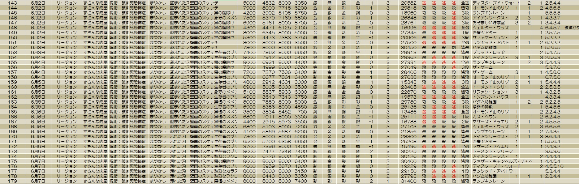 これは狂乱の使用回数や深手を負わせることで得る評価ポイントです